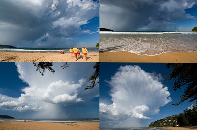 Sydney coastal weather often highlighted the already spectacular beachscenes. This one squall passed over the Central coast and metamorphosed its way south down the line of the northern peninsular beaches. (Shot from South Palm Beach.)