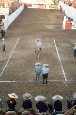 There is tradionally a competative sequence of 7 tests either performed individually or as a team. There’s a full description of each event at http://en.wikipedia.org/wiki/Charreria