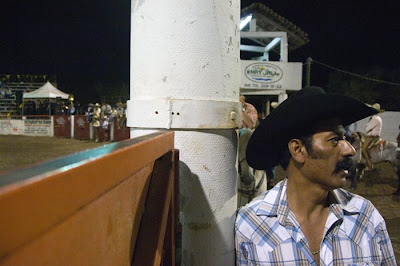 It was a scene of dust, leather, tequila, suede, sweat, cervezas, horseflesh, bravado, musica Norteño, some bewildered livestock, more beer, overworked baños, machismo, a great crowd y mas polvo. It starts under the noonday sun and ends under floodlight. I went twice and got there late afternoon, shot through sunset, twilight and into the mysterious world of sodium and neon. I haven’t processed the b&w (Neopan 1600) yet but the D2X pushed into the grainy zone of lofty ISOs did well.