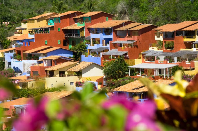 The name is synonomous with its own architectural style and the bold colours with which the Careyes villas are painted. The enclave of satellite mansions contains at it’s centre a hotel and a cluster of multi-coloured, greek island-style stacked dwellings aptly named Las Casitas de Las Flores.